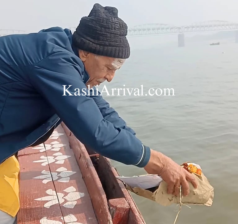If you also want to perform Asthi Visarjan online in Kashi, you can book this package. Sometimes, people are unable to travel due to leg issues or other problems, but they still wish to perform Asthi Visarjan for their ancestors in Kashi. This is possible without being physically present; however, you will need to perform the rituals yourself. Our priests will be present at the ghats of Kashi with all the necessary offerings for Asthi Visarjan. Through a video call, you will repeat the chants as instructed by the priest, and your ritual will be completed with proper traditions and procedures.