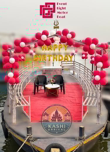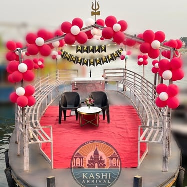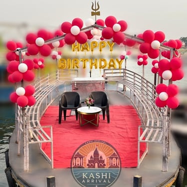 Make your special occasions truly unforgettable with customized boat decoration services on the sacred Ganges River in Varanasi. Whether you’re celebrating a birthday party or a surprise event, these services offer a unique and elegant way to mark the moment. The boats—ranging from traditional Bajra boats to modern motorboats—are beautifully decorated with fresh flowers, balloons, lights, and thematic decor tailored to your preferences.