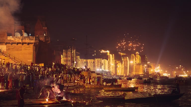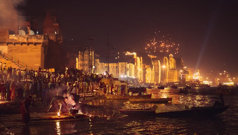 Varanasi—Kashi, the Eternal City—turns other-worldly on Dev Deepavali. Every one of its 84 riverfront ghats explodes into a sea of lamps, chants ripple across the water, and fireworks paint the sky behind centuries-old temples. The most spellbinding seat in town is boat in mid-Ganga. Reserve it now and watch history, myth, and mystique unfold in a single, unforgettable glide.